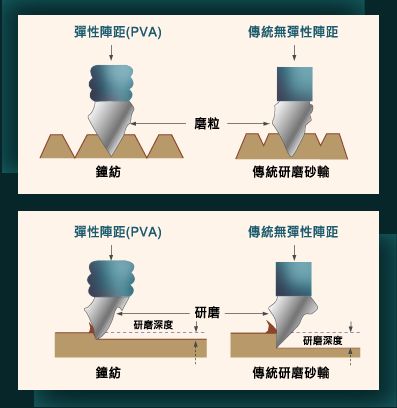 在生產過程中,我們嚴謹地控制著PVA 海綿研磨砂輪的硬度和彈性,令砂輪在使用時,有著緩慢而穩定的消耗。並且提供一個連續更新的自銳表面,令其研磨效率由始至終保持一致。更不需停止生產線的運作,來修整砂輪的表面。